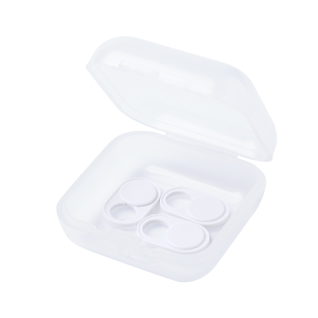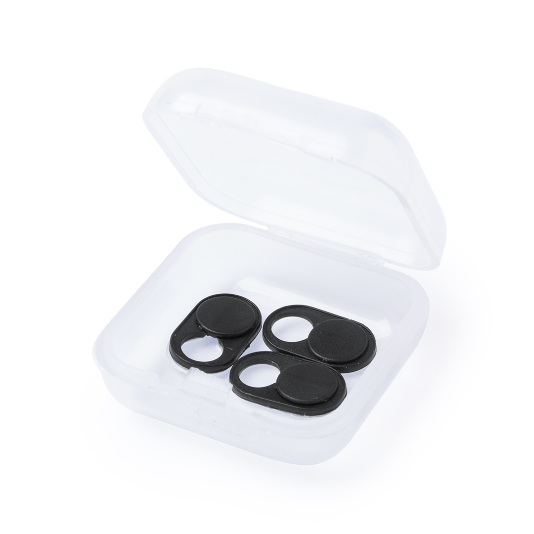 Cover für Webcam zum Schutz der Privatsphäre. In ultrakompakter Größe und verpackt in einer individuellen, halbtransparenten Dose mit 3 Stück. Erhältlich in den Farben Weiß und Schwarz. Präsentiert in einem individuellen Beutel mit Kartoneinlage.